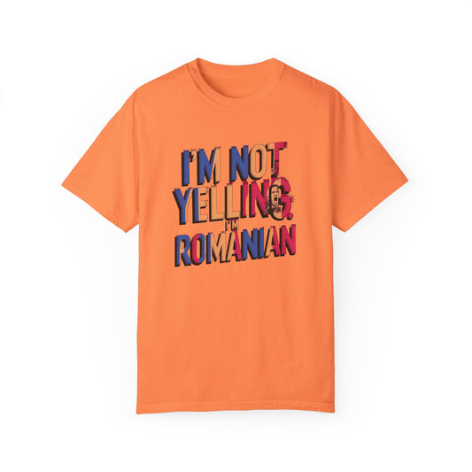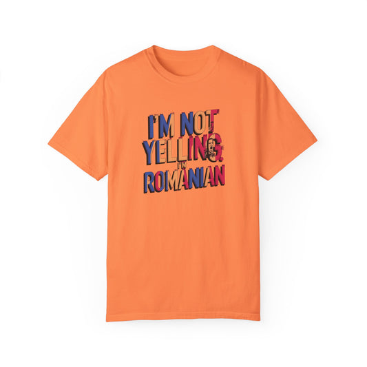 Funny Romanian Heritage T-Shirt - "I'm Not Yelling, I'm Romanian" - Unisex Garment-Dyed Tee