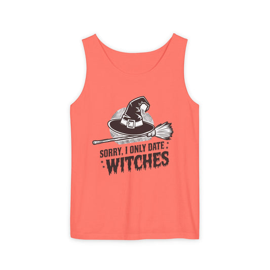 Funny Witches Date Tank Top - Unisex Garment-Dyed Tee for Halloween