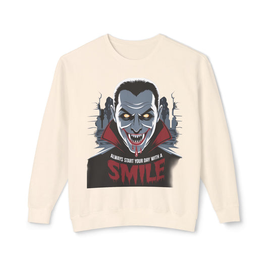 Unisex Halloween Vampire Crewneck Sweatshirt - 'Always Start Your Day with a Smile'