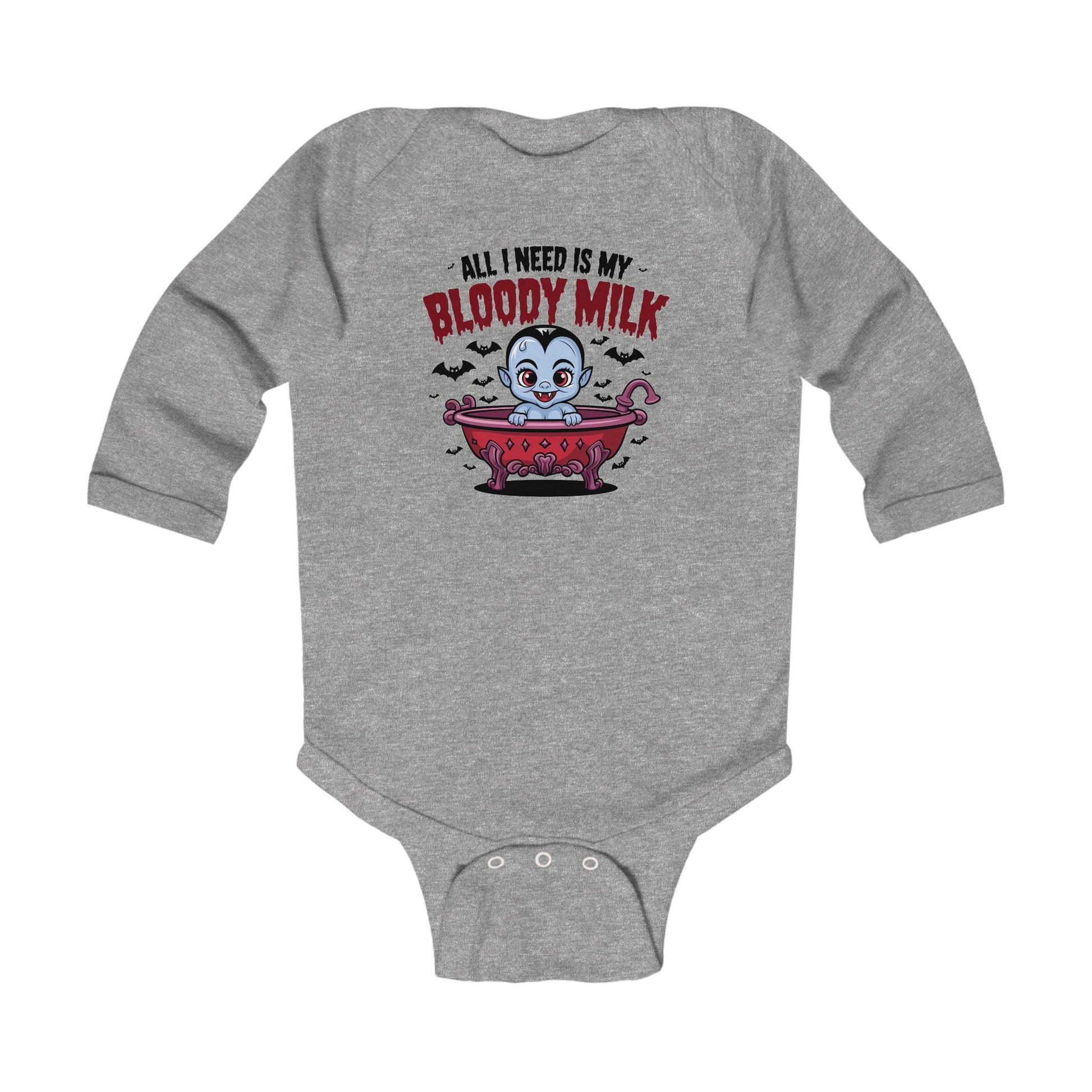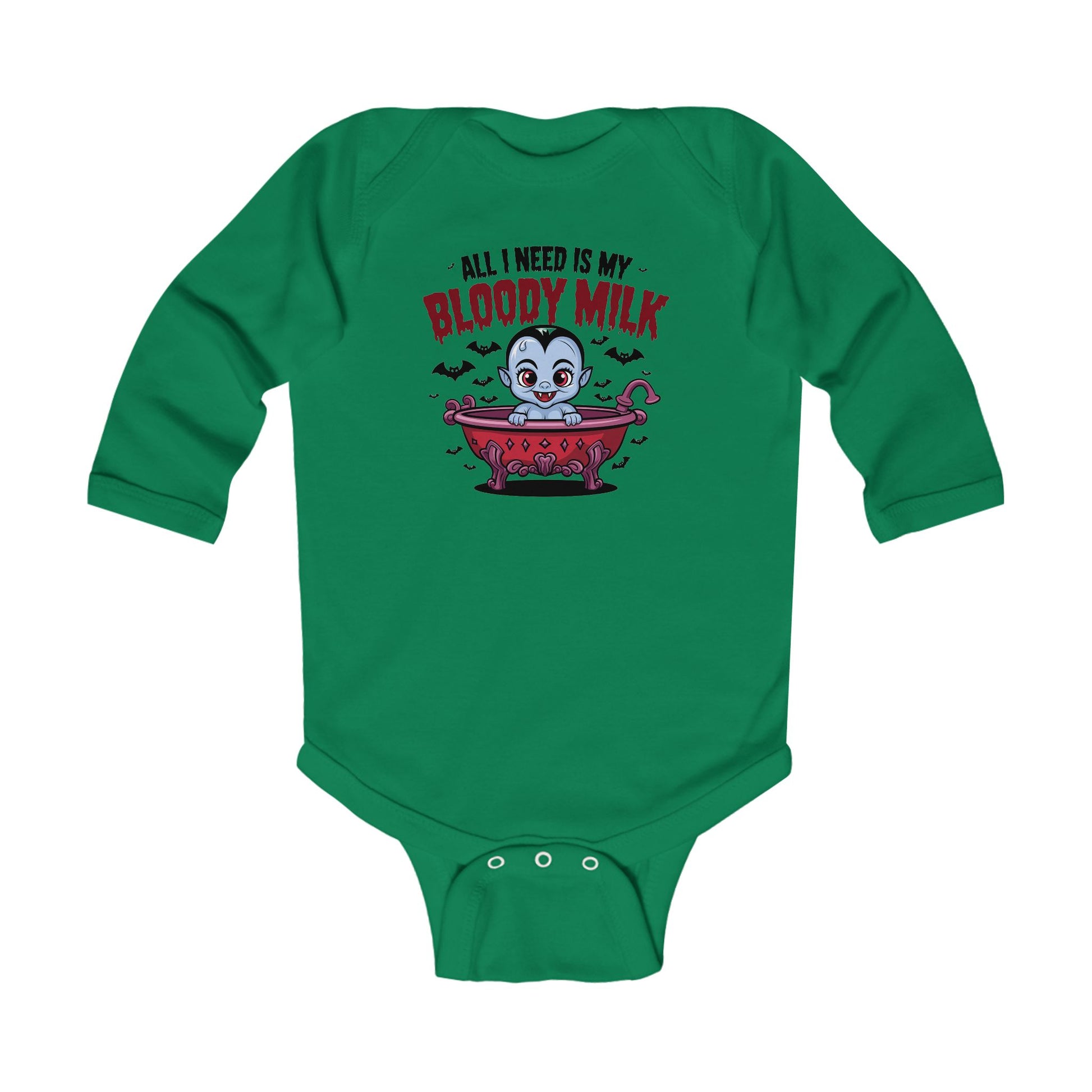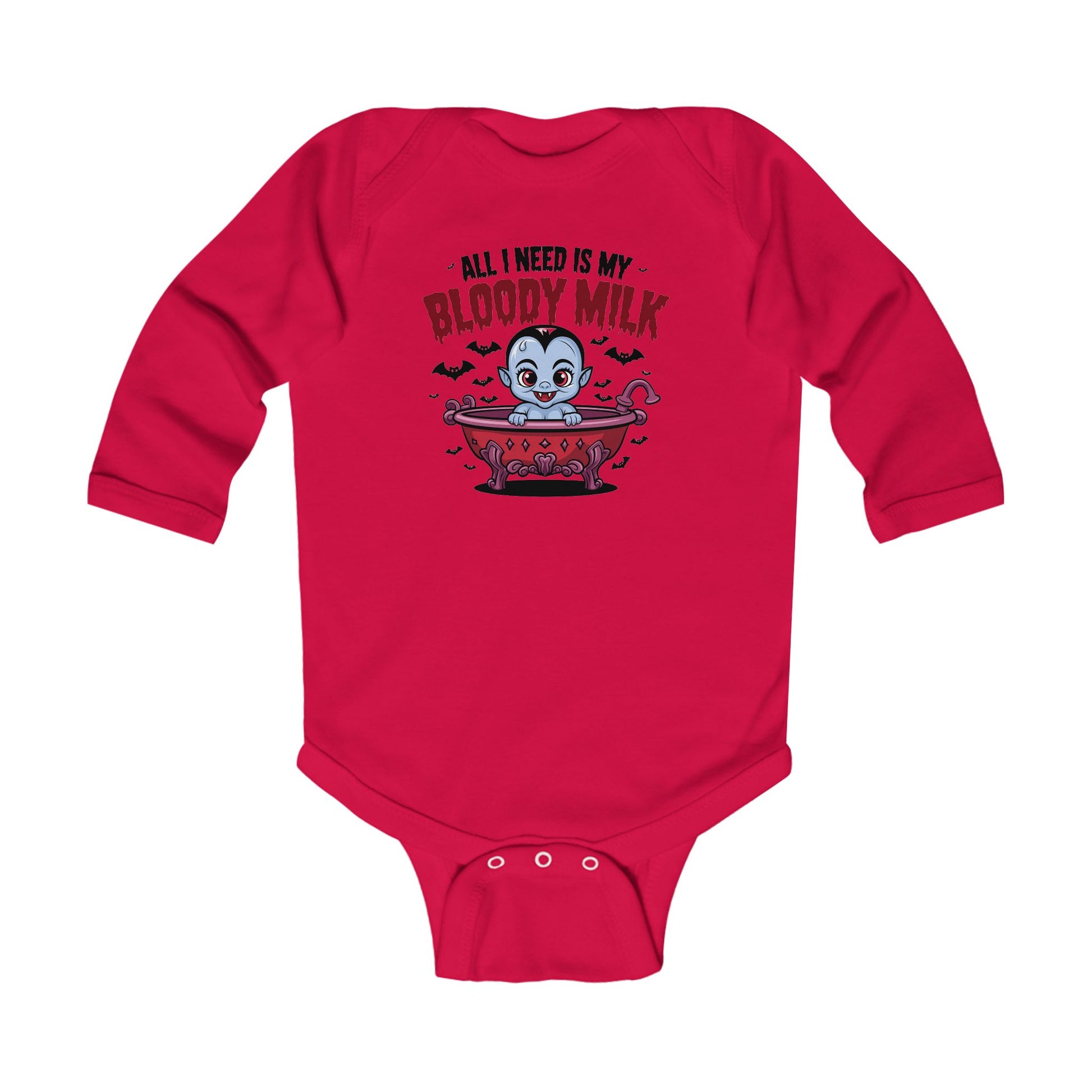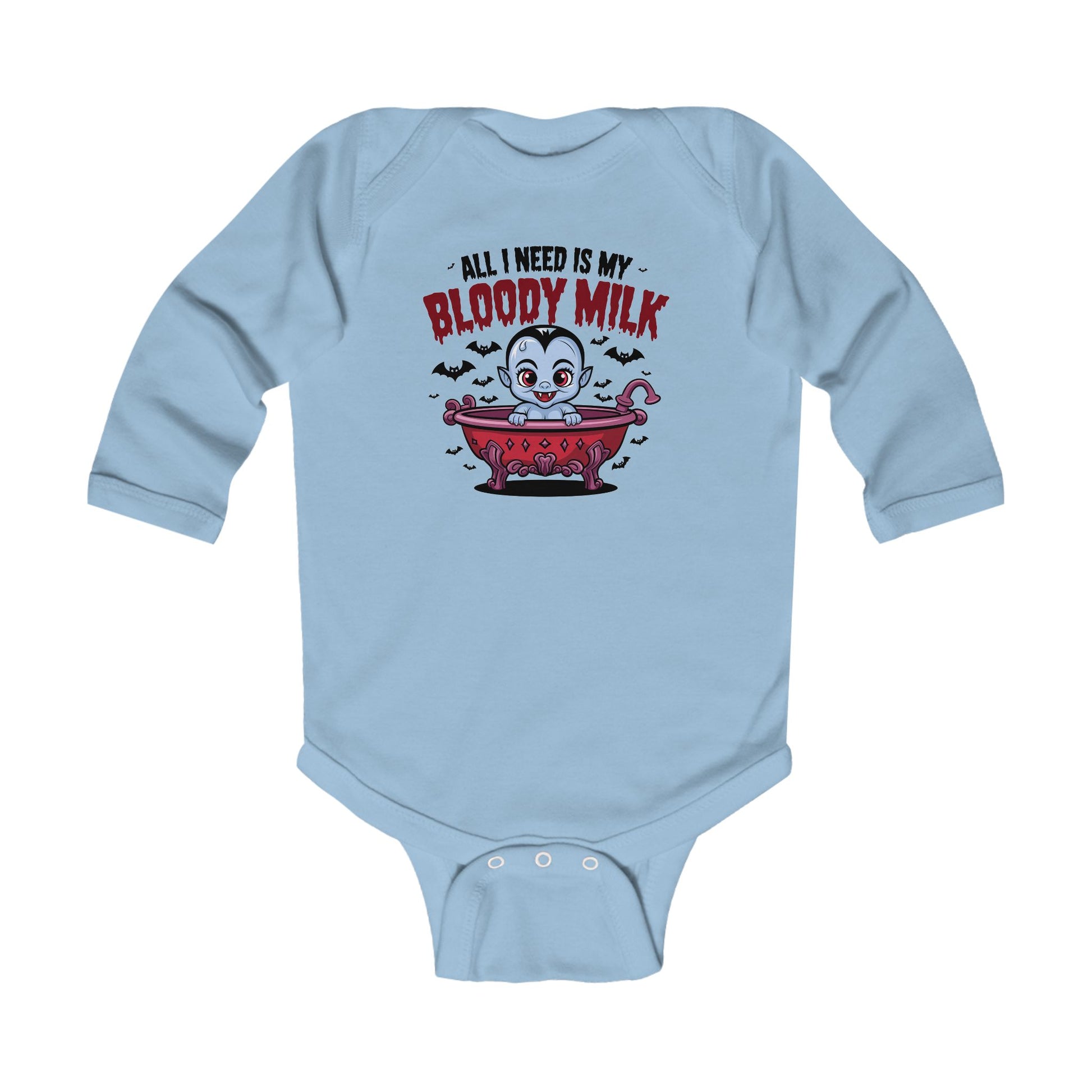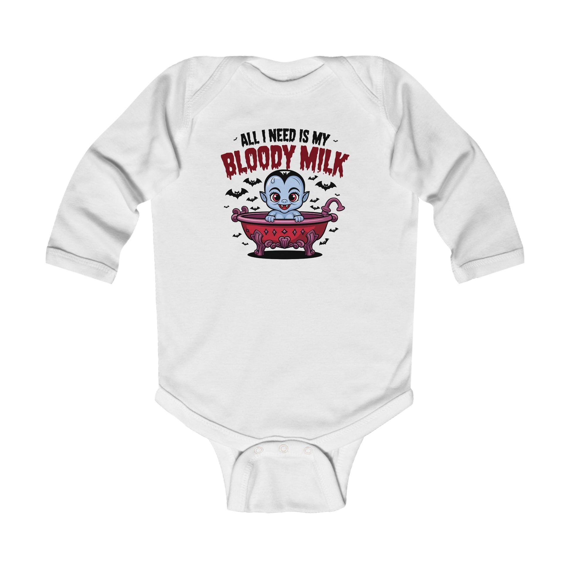 Cute Halloween Infant Long Sleeve Bodysuit - "All I Need Is My Bloody Milk"